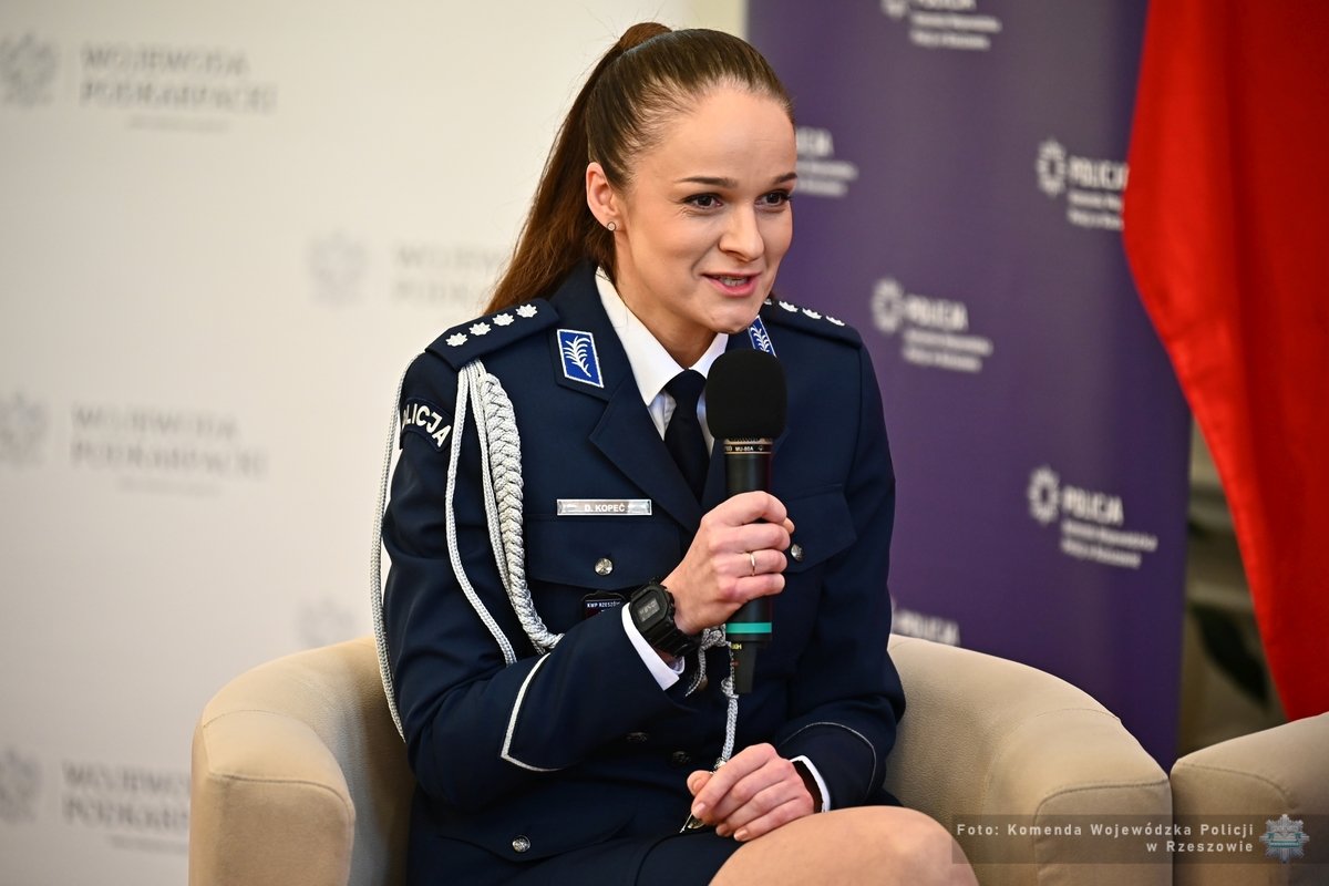 Podczas konferencji uroczyście otwarto wystawę „100. rocznicy powstania Policji Kobiecej 1925-2025”. O historii kobiet w Policji opowiedział nadkom. dr Marcin Dziubak z Wydziału Komunikacji Społecznej KWP w Rzeszowie. Funkcjonariusz przybliżył początki żeńskiej Policji, kiedy to w 1925 roku w odradzającej się Polsce powołano pierwszy oddział policjantek odpowiedzialnych głównie za ochronę nieletnich i zwalczanie przestępczości obyczajowej.