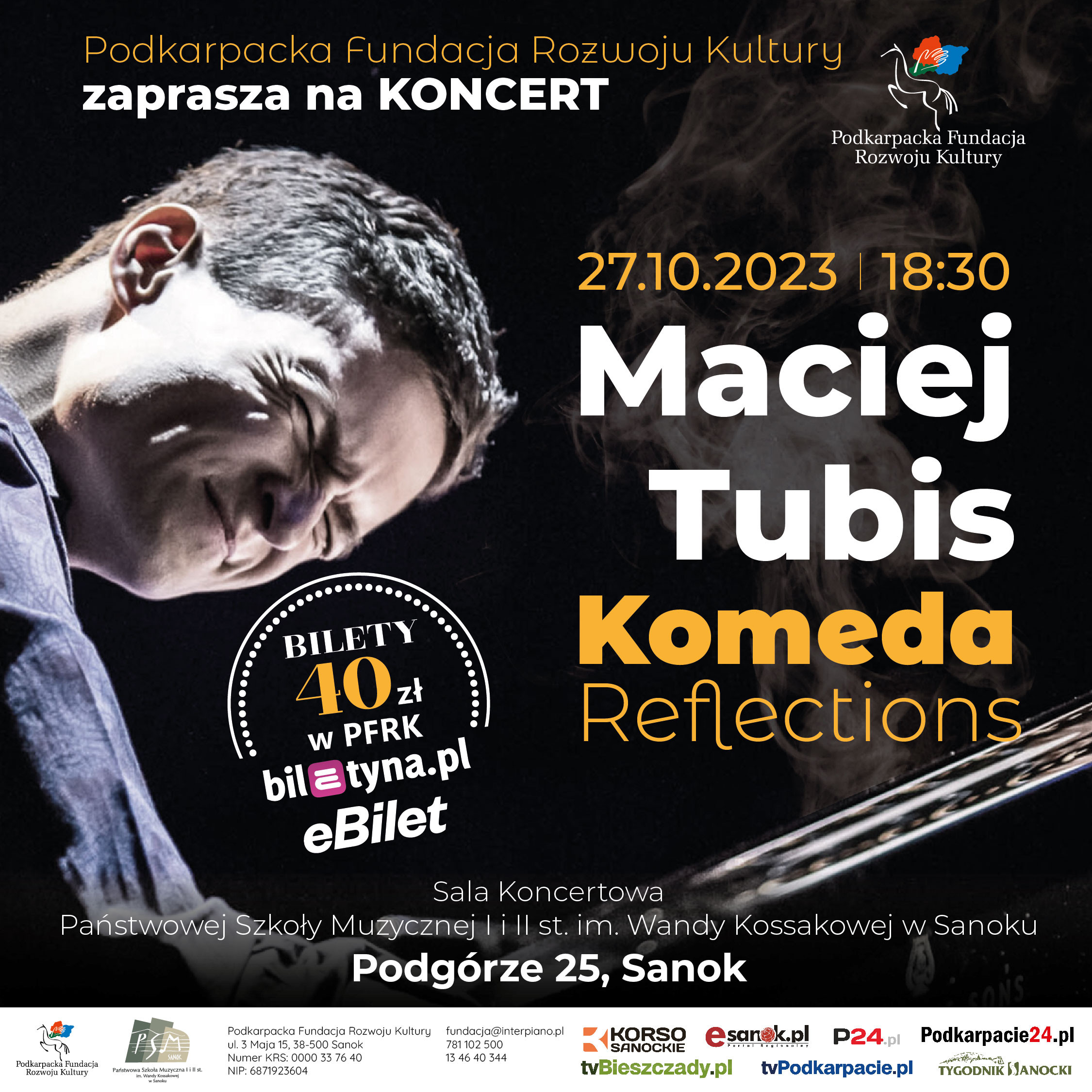 Podkarpacka Fundacja Rozwoju Kultury zaprasza na koncert Macieja Tubis